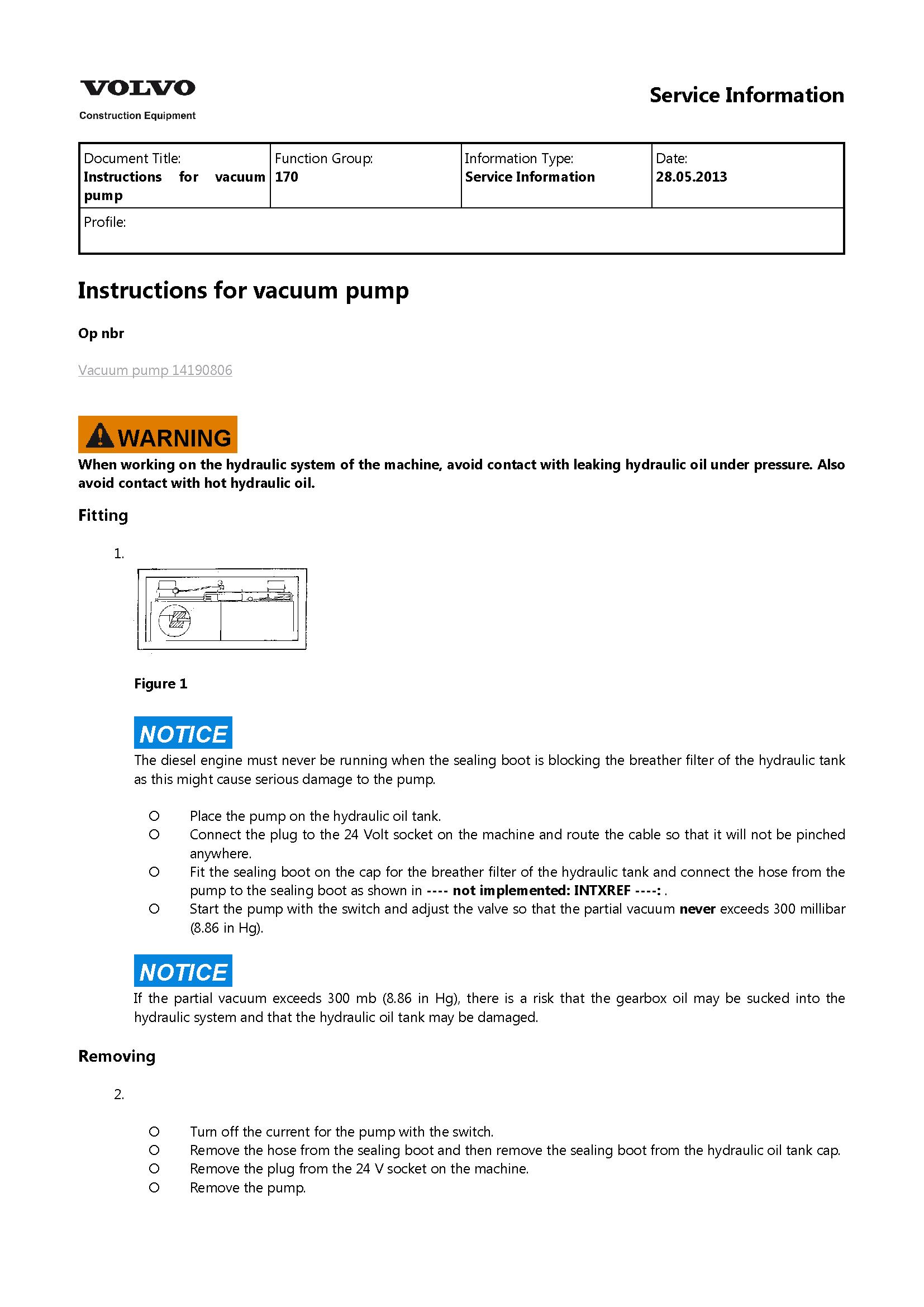 Instructions for vacuum pump Volvo ec 200 service, Instructions for Vacuum Pump – Volvo EC200 (Service Content Overview)