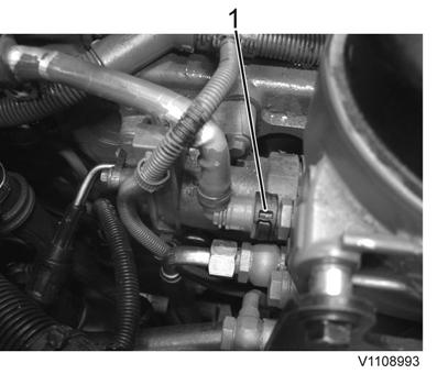 12. Remove the feed line. Attach a 10 mm (0.4 in.) hose to the feed line for circulating the fuel to the tank.