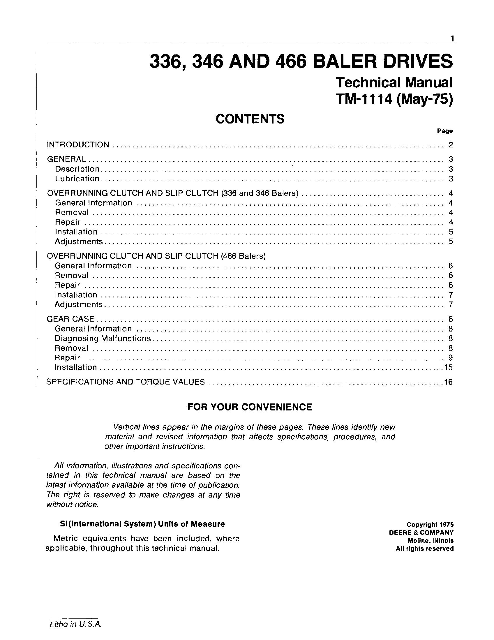 JOHN DEERE 336, 346 AND 466 BALER DRIVES Service Repair Manual, Maintenance,