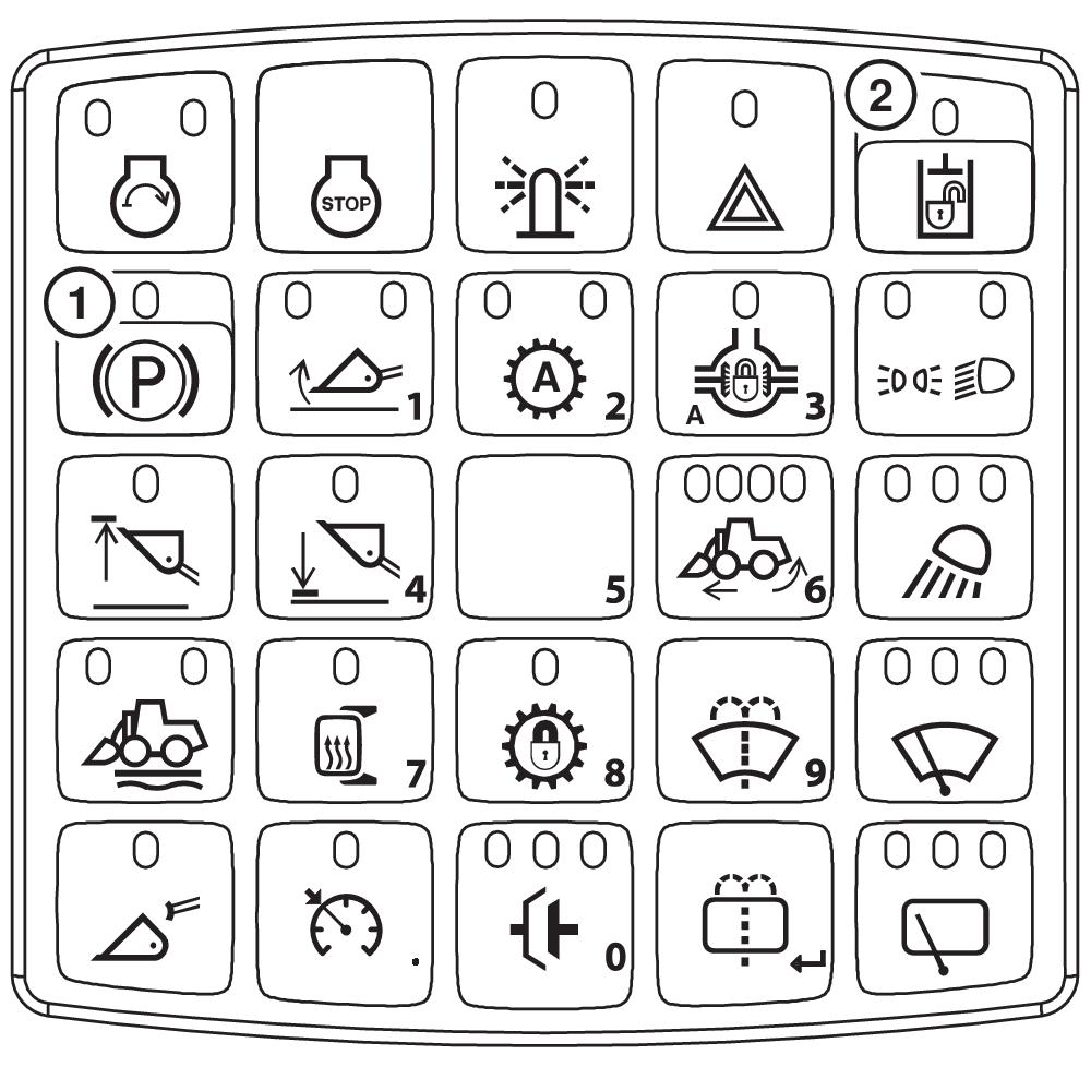 Theproductidentificationnumber(PIN)plate(1)islocatedtothe frontoftheleftcabsteps.Eachmachinehasa17-characterPIN(2) shown on PIN plate.