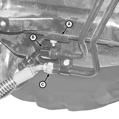 A—SteeringLineBracket B—HydraulicSteeringHose C—HydraulicSteeringHose D—HydraulicSteeringReturnLine