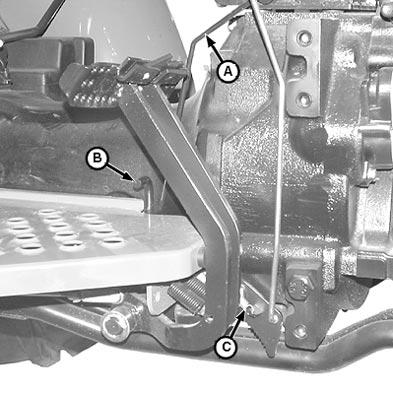 13.Disconnectthrottlelinkagerod(A)fromfootthrottle (B).