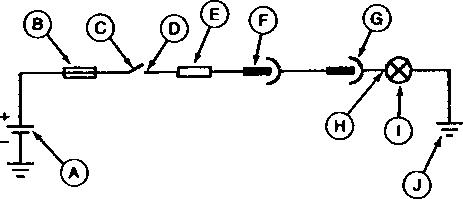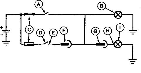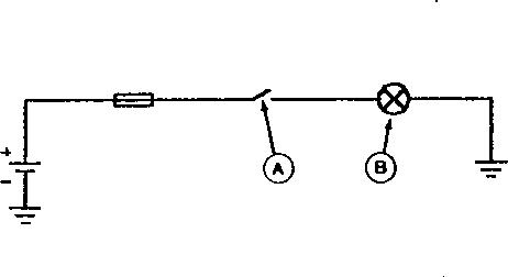 Battery side of circuit breaker B Load side of circuit breaker/input of switch C Output of switch/Input of load