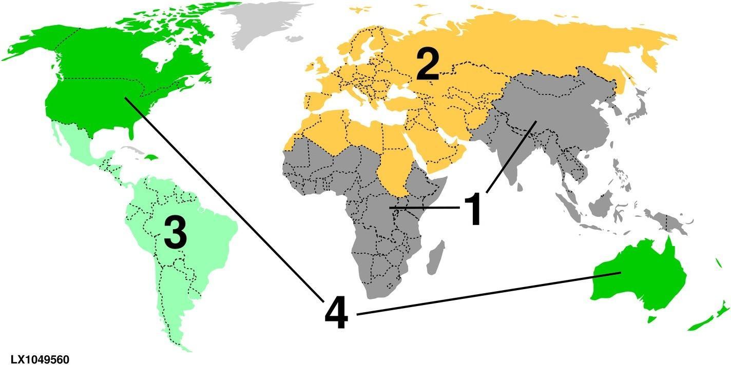 Region 1 China, India, South and East Asia, Africa except for North Africa