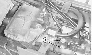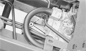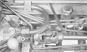 5. Disconnect fitting (A). Loosen clamp on other end and turn tube (B) to permit transmission removal.