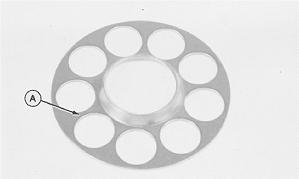 Check area around piston slippers (A) for scoring. If any part of the piston retainer is damaged, the cylinder block assembly must be replaced.