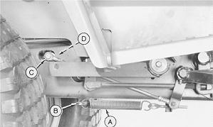 4. Remove bolt (C) to disconnect linkage from transmission (D).