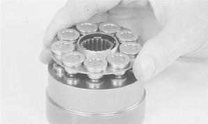 IMPORTANT: Do not interchange pistons between motor and pump cylinder blocks. Pistons and cylinder blocks are matched.