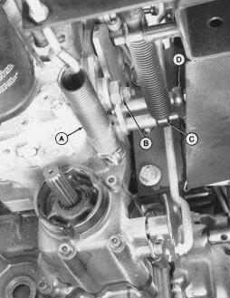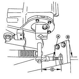 • If transmission does not return to neutral or returns too slowly, tighten nut (C) to increase tension on return linkage.