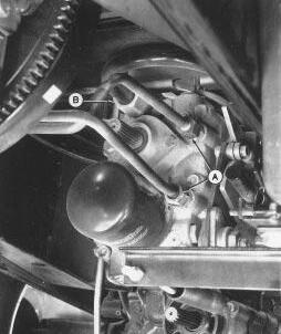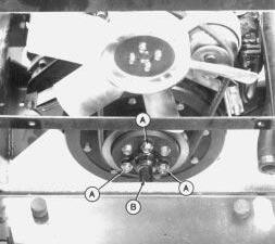 1. Remove three cap screws (A) from drive shaft (B) at engine coupler.