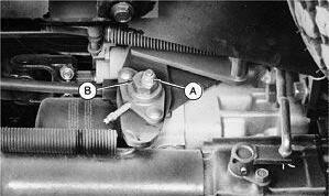 3. Remove oil cooler lines (A). Lines are located below the radiator area.