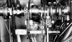 6. Apply petroleum jelly to round key (C) and input shaft keyway to hold key in place during installation of charge pump.