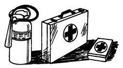 Keep a first aid kit and fire extinguisher handy. Keep emergency numbers for doctors, ambulance service, hospital, and fire department near your phone.