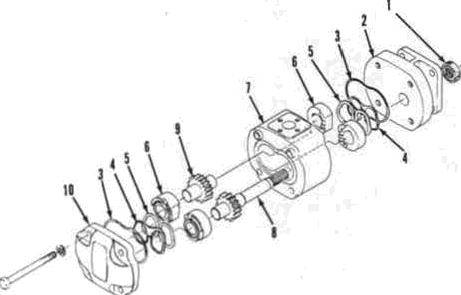 Prior to d semhling pump, scribe a mark across pump sections to aid in reassemhly.Removeendcover(1 fiig. 44) and carefully separate components from case (9). Note location of comportents so they can t›e reinstatiert in their original t›nsitions.