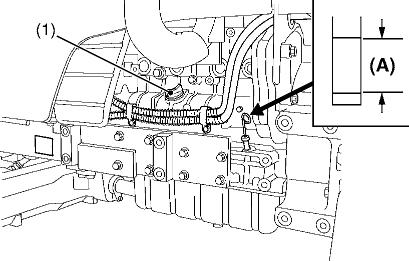 (1) Drain Plug (A) Oil level is acceptable within this (2) Hydraulic Oil Filter range.