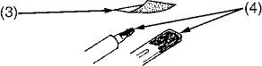 7. After the new filter has been replaced, fill with the oil up to the upper notch on the dipstick (4).
