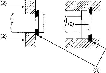 • When reassembling external snap rings or internal snap rings, they must be positioned so that sharp edge faces against the direction from which a force is applied. See the figure left side.
