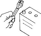 • When removing the battery cables, disconnect the negative cable first. When installing the battery cables, connect the positive cable first.
