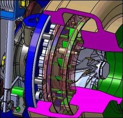 The eVGT uses a series of aerodynamic vanes to direct exhaust toward the turbine controlling both the velocity and angle the exhaust contacts the turbine. This gives the ECU the ability to dynamically lune" the boost pressure at any given engine speed and load, Improving performance and fuel economy.