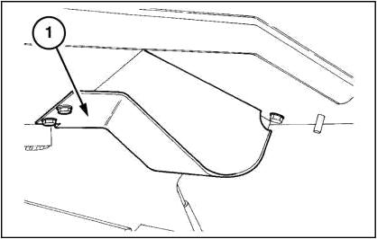 1. Fully raise the engine hood (1). Disconnect the supporting damper and secure the damper to the restraint bar.