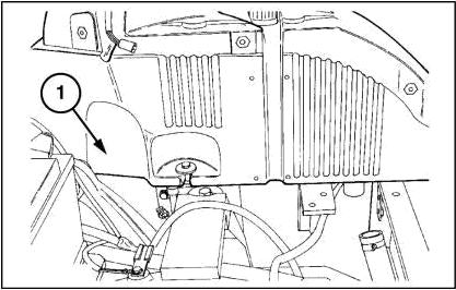 1. After disconnecting the operator present switch, loosen the retaining bolts and remove the seat(1).