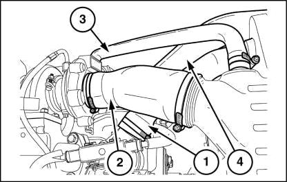• Air supply sleeve from the turbocharger to the intercooler (4)
