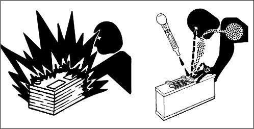 • Keep sparks, lighted matches, and open flame away from the top of battery. Battery gas can explode.