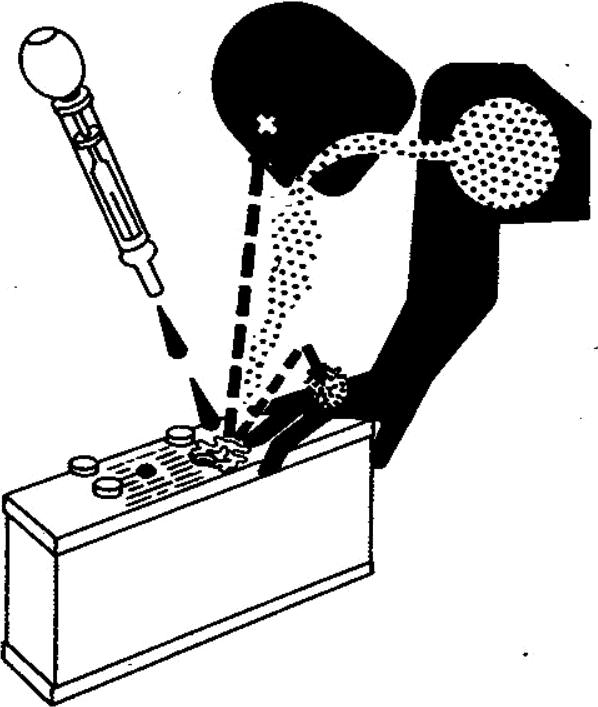 Battery gas can explode. Keep sparks and flames away from batteries. Use a flashlight to check battery electrolyte level.