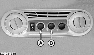 Heating is regulated by heating control knob (B), which is located in the cab roof; cab cooling is regulated at knob (A).