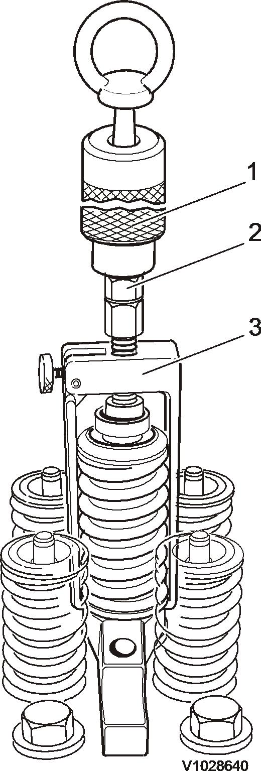 Remove the bolts for the unit injectors' attaching yoke. Remove the unit injector with 9996400 Impact puller9990262 Adapter9990006 Puller.
