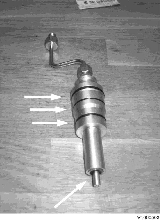 13. Check that all adapters have O-rings and seal against the copper sleeve. Install adapters 9998248 in the unit injectors' place in the cylinder head.