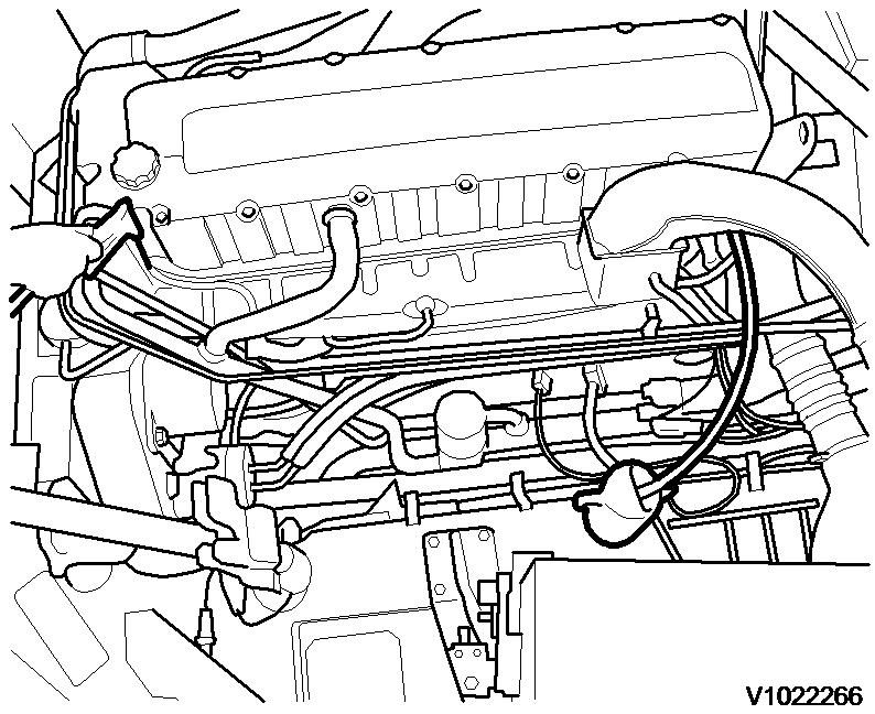 3. Drain the cylinder head to avoid fuel in the engine oil. Loosen and plug the hose connection in the engine's trailing edge. Loosen the feed hose and lead it into a container. Since the feed pump will pump out fuel during the test, the container's volume must be at least5litres(1.3USgal).