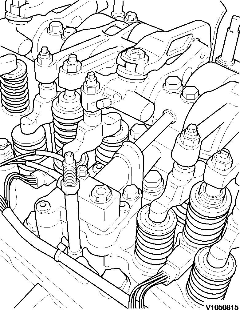 22. Install the unit injectors with new O-rings and centre the unit injectors between the valve springs. Install the attaching yokes. Tightening torque: see 230 Tightening torque, fuel system