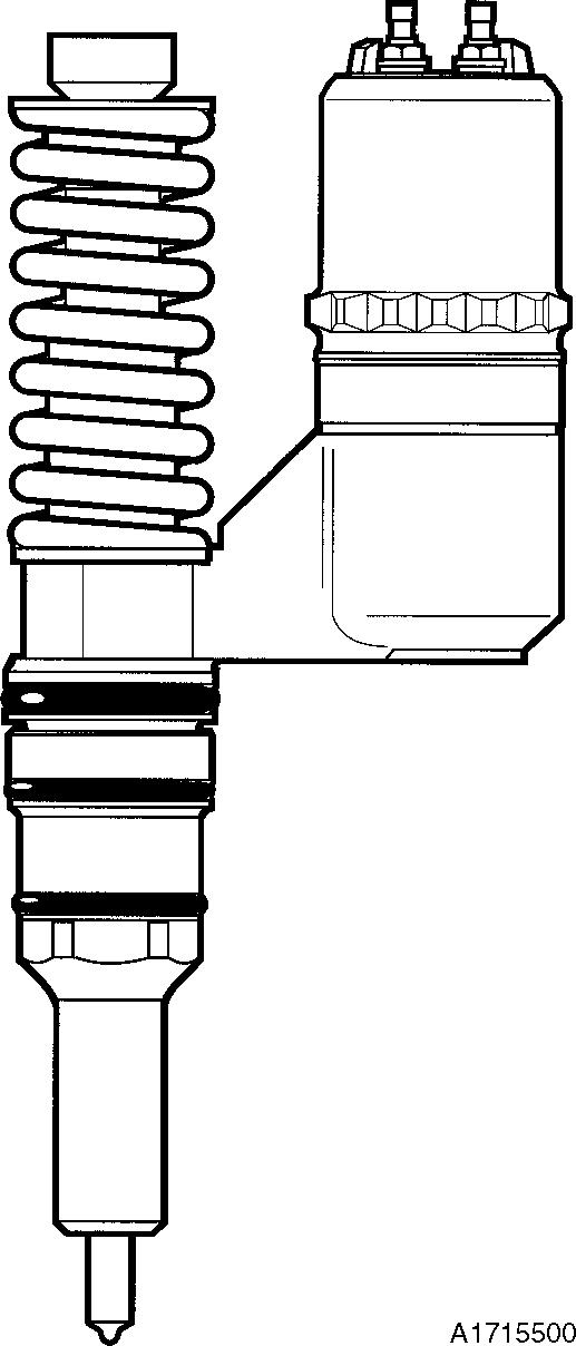 The unit injectors are positioned in the centre above the pistons and are controlled via the camshaft and a control unit (EECU).