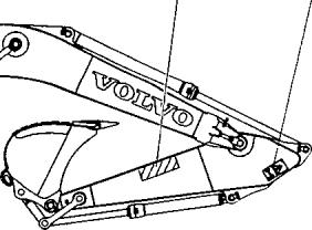If the machine is equipped with an adjustable boom or quickfit bucket, the digging arm with its boom fully retracted can damage the operator cab.