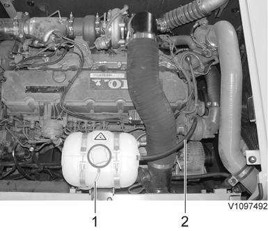 2.Drain off coolant, See . 261 Coolant, changing Close the drain valve after draining the coolant in about 4 minutes.