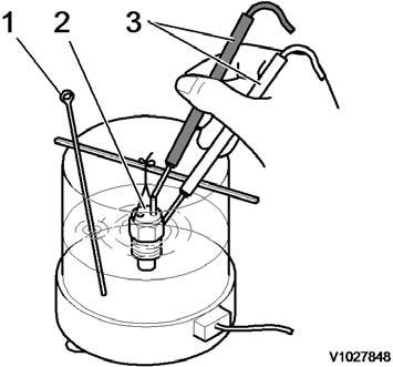 7.Install 9808038 Leak detector over the opening on the expansion tank and pump 3–5 times with the rubber bulb to suck in air from the tank. Wait 10–15 seconds to see if the reaction fluid changes colour.