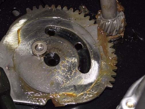 If the steering gear teeth are damaged or missing, the steering gear will need to be replaced. To make the repair easier, consider moving the fuel tank out of the way and removing the fuel tank brace prior to starting the job. Also consider disconnecting the wiring harness at the engine connector and moving it out of the way.