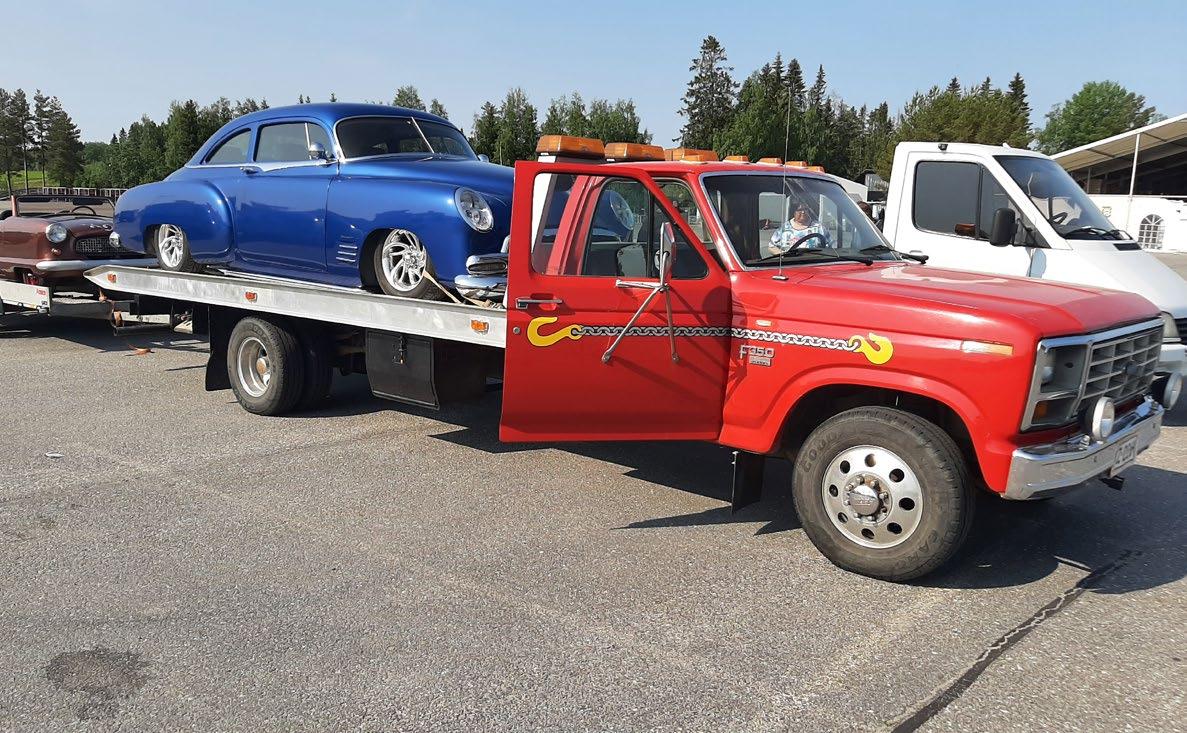 Jaakkolan Jannu saapui omalla kuljetusautollaan tapahtumaan. Autotrailerin päässä oli vielä toinen autotraileri, joten kuljetus sujui Alavudelta Tuuriin ”junaletkassa”. Hannun kalustoa oli molemmilla sivuilla.