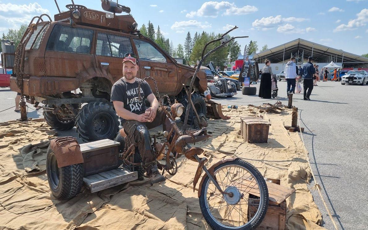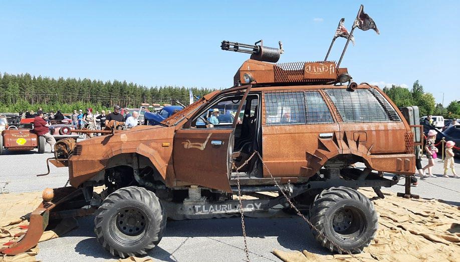 Kauhavalainen Joonas Peltotupa saapui näyttävällä Mad Max -tyylillä rakennetulla ruostutetulla Mazda 323 -farmarilla, joka on nostettu Nissan King Cabin 4x4-rungolle. Auto on varustettu 2.5-litraisella Nissan-dieselillä, ja renkaat ovat 31”x15.5”-R15-kokoiset. Vanteet ovat itse levitetyt 13”-leveät peltivanteet.