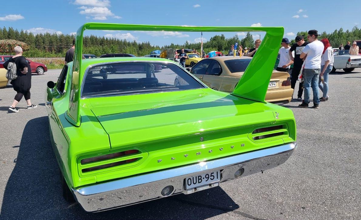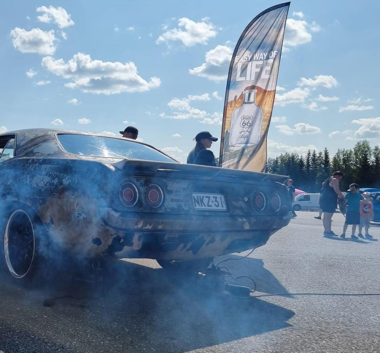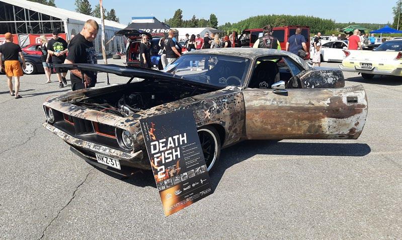 Jyväskyläläinen Jani Immosen Plymouth ei jättänyt ketään kylmäksi. Vuoden 1973 Cuda paloi tallipalossa, mutta sen jälkeen se on kunnostettu niin, että ulkopinta on jäänyt palaneeksi. Hauska yksityiskohta oli, että miehellä oli savukone herättämässä mielenkiintoa – hyvin oivallettu.
