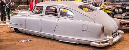Jätyrin super ”Nasu” Nash Airflyte Ambassador. Tämä todella virtaviivainen ja mielenkiintoinen muotoilutyö on valmistunut sotien jälkeen. Nasun konehuoneessa kehrää Oldsin V8 Jetfire.