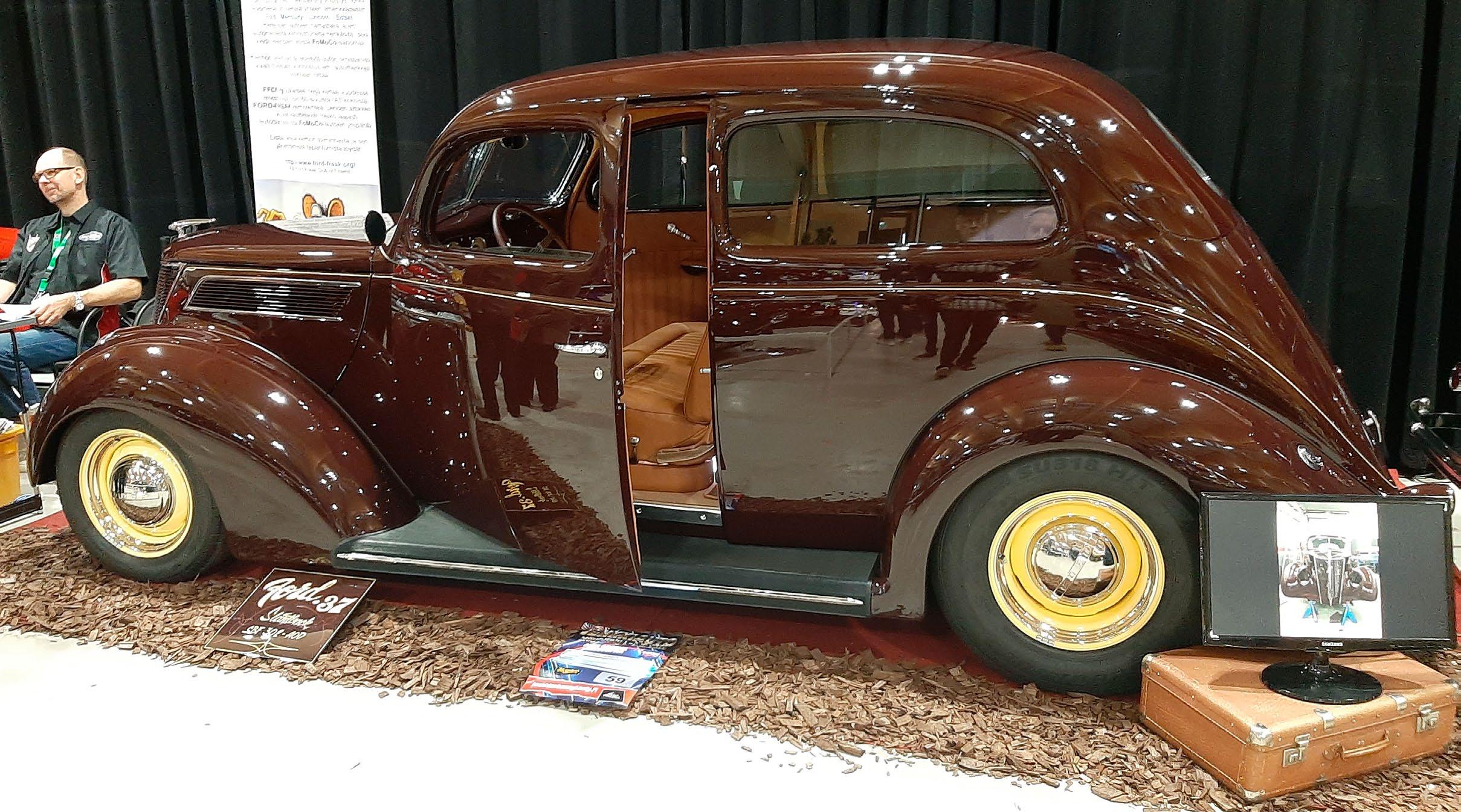 Ford Freak Club of Finland Ry:n osastolla näytillä ollut Risto Vuorelan kuuma Ford Tudor Slantback 1937 rodi uutuus. Maukas kokonaisuus vanhaa designia ja modernia tekniikkaa toi Jenkkiautonäyttelyn Best Hot Rod 2. palkinnon.