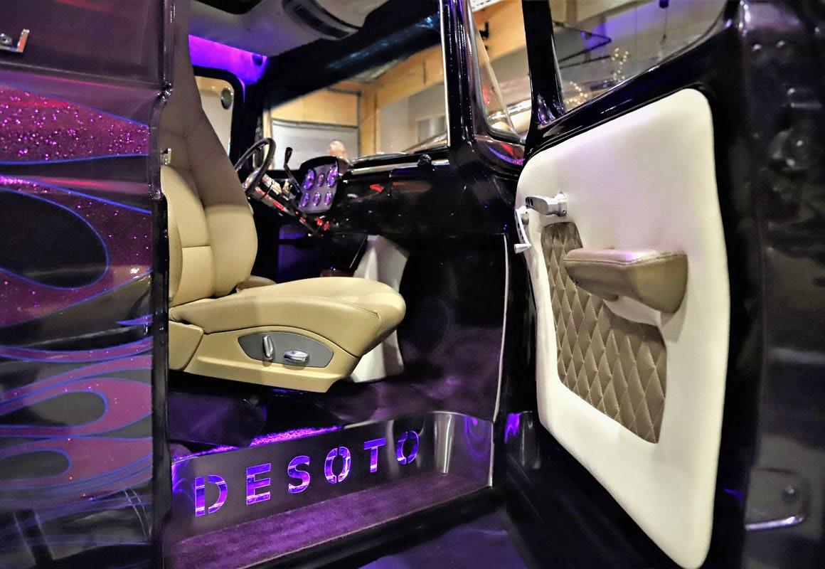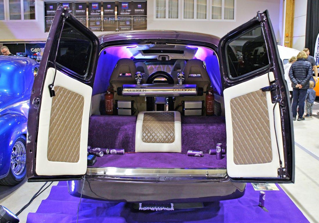 Auton värimaailmaan on haettu mallia 1960–luvun taitteelta. Sisätilan verhoilu on kuin aikamatka uuden Chevy 1959 tehdavalmisteiseen kajuuttaan. Kaunis väritys, tikkaukset ja materiaalit luovat laadukkuutta myös auton sisätilaan. Lars oli paikalla näyttelyn rakentelupäivänä lähes loppuun saakka viimeistelemässä osastoa, valoja ja yksityiskohtia, jotta auto edustaisi parhaimmillaan ovien auetessa. Työ ei mennyt hukkaan. Auto sai valtavasti huomiota ja ihailua ja palkittiin Best In Show-palkinnon lisäksi Custom 2. pokaalilla.