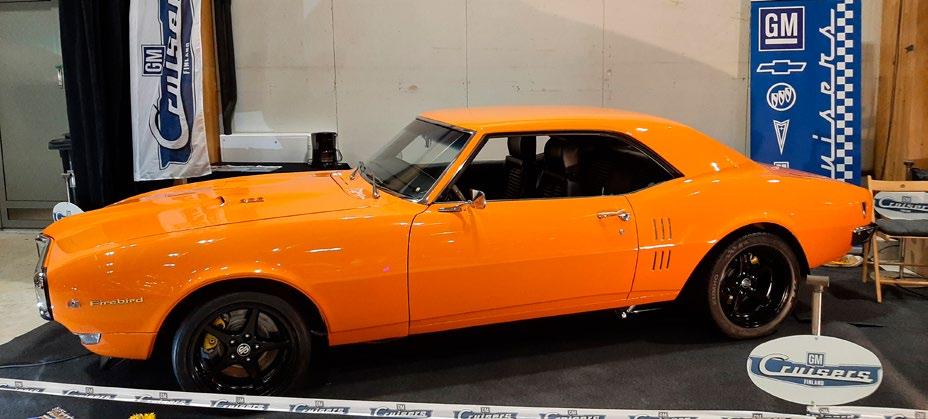 GM-Cruisers -kerhon osastolla oli esillä kaksi tosi helmeä. Jere Koposen tyylikäs Pontiac Firebird 1968 Chevroletin pikkulohkolla. Auton alustaa on modernisoitu maltillisesti ja autoa on jalostettu urheilullisuus edellä. Sopivasti rockia ja swingiä, sykettä ja baunssia!