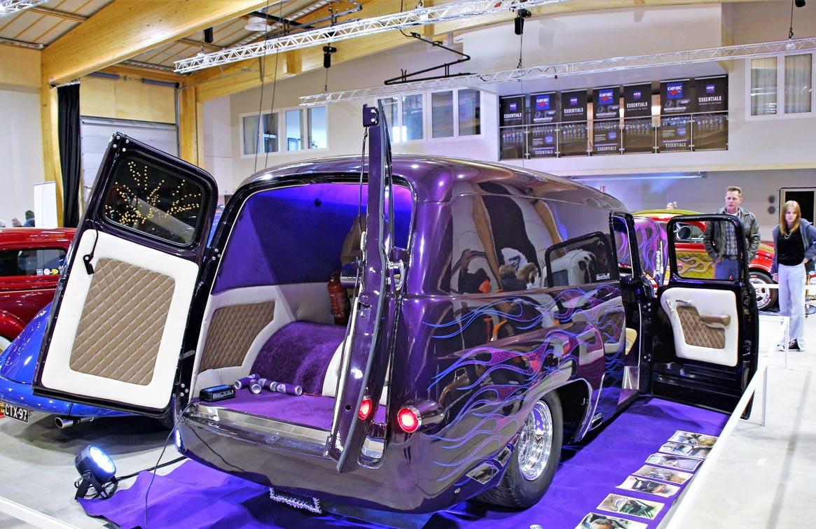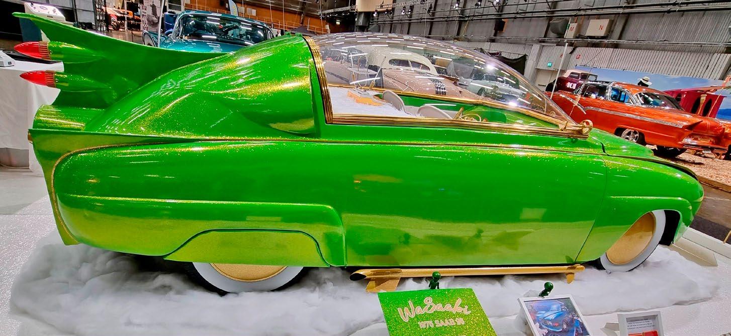 National Roadster Show’ssa custom Chevy saa. Auto matkaa Euroopasta Californiaan osallistuakseen etelärannikon eri näytteyihin. Hämmästystä ja kunnioitusta tulee varmasti ja palkintoja useampi.