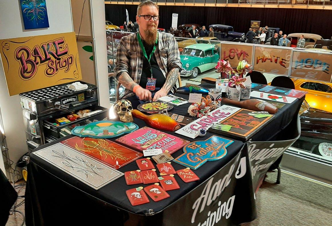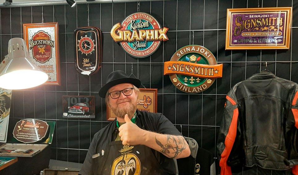 Teppo Järvi sekä kustom kulture ja pinstriping taiteilijat Jussi Alasalmi, Marco ”Platu” Planting sekä Ari Aho.