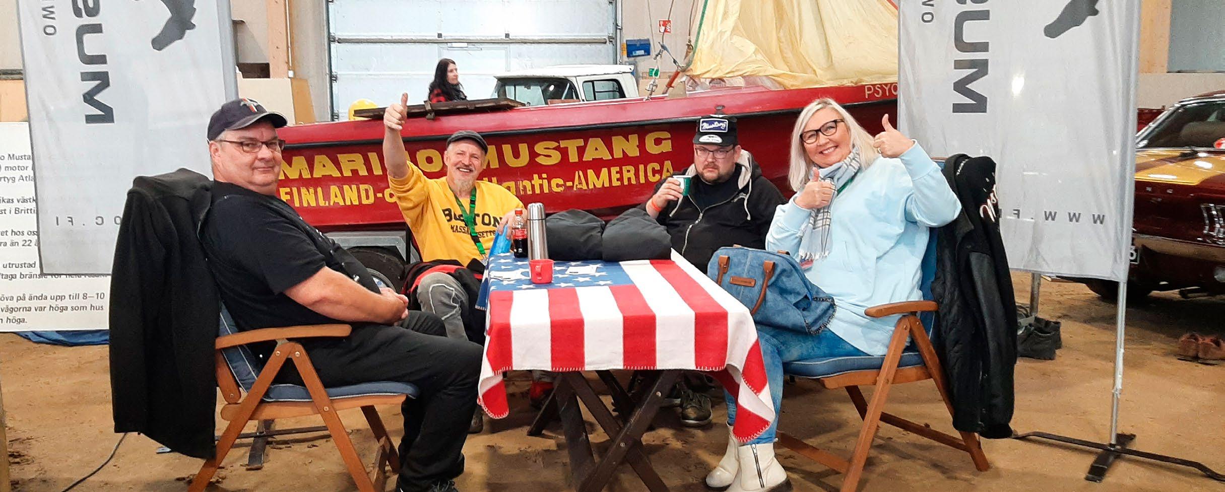 Marino esitteli myös toisen erikoisuuden, psykopaatin. Tällä veneellä kaksi turkulaista miestä ylitti Atlantin vuonna 1971. Vene on säilytetty täsmälleen samassa kunnossa sitten suuren seikkailun, tähän päivään asti. Vetoautona Jarmo Vilenin Mustang, jolla ajettu Amerikan halki, pitkin Route 66 -reittiä.