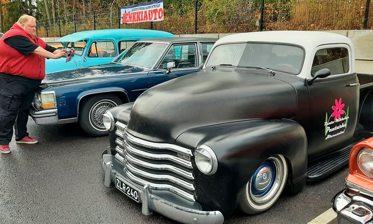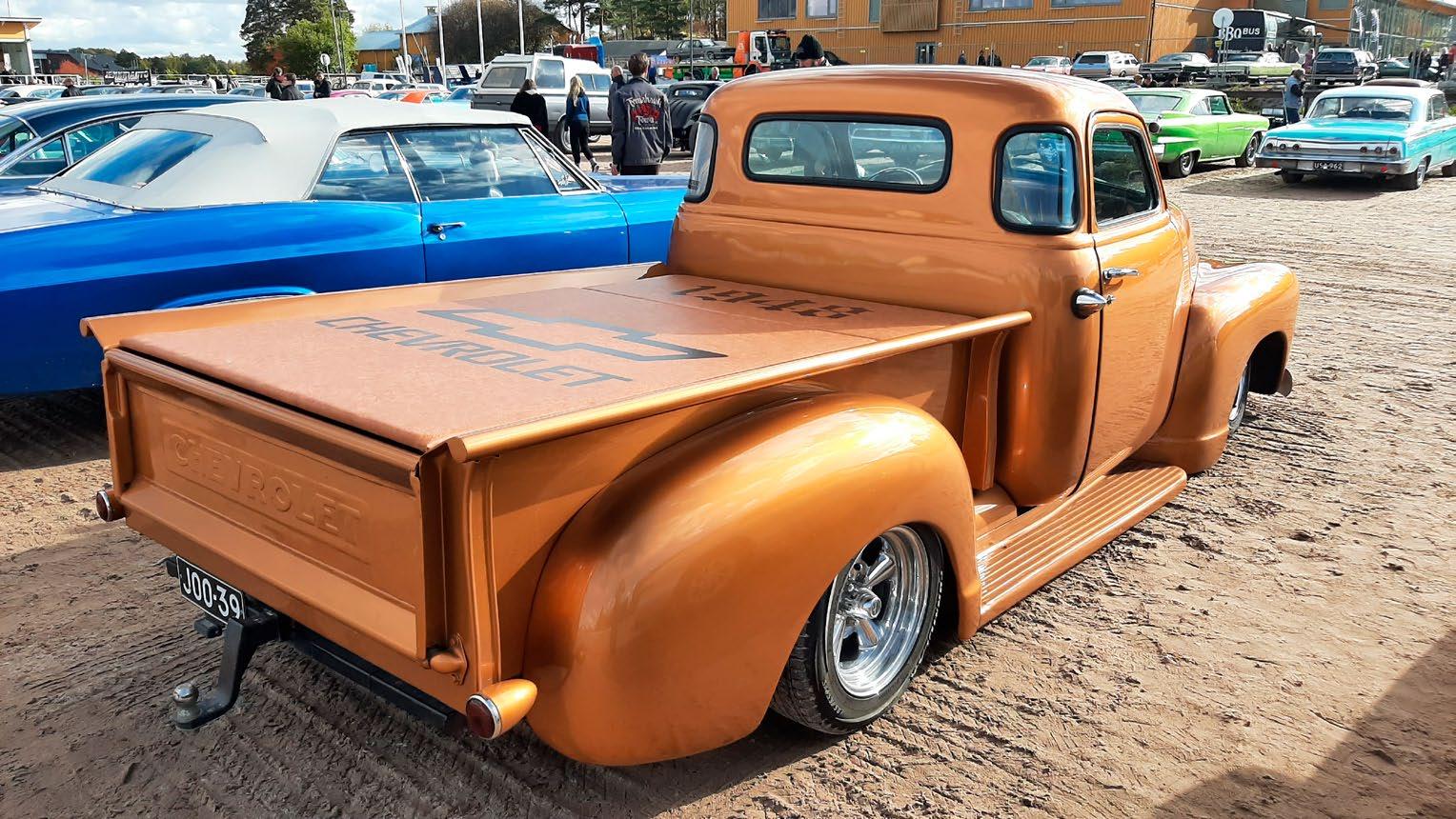 Henrik Hallbergin Chevrolet C-10 custom asianmukaisella somistuksella. Henrik tiimeineen järjestää Puumalan Pistonhiekkojen vanhalla sotilaslentokentällä veteraaniautojen Hayride Jamboree hiekka-ajot, jossa tärkeintä ei ole voitto vaan pitää hauskaa.