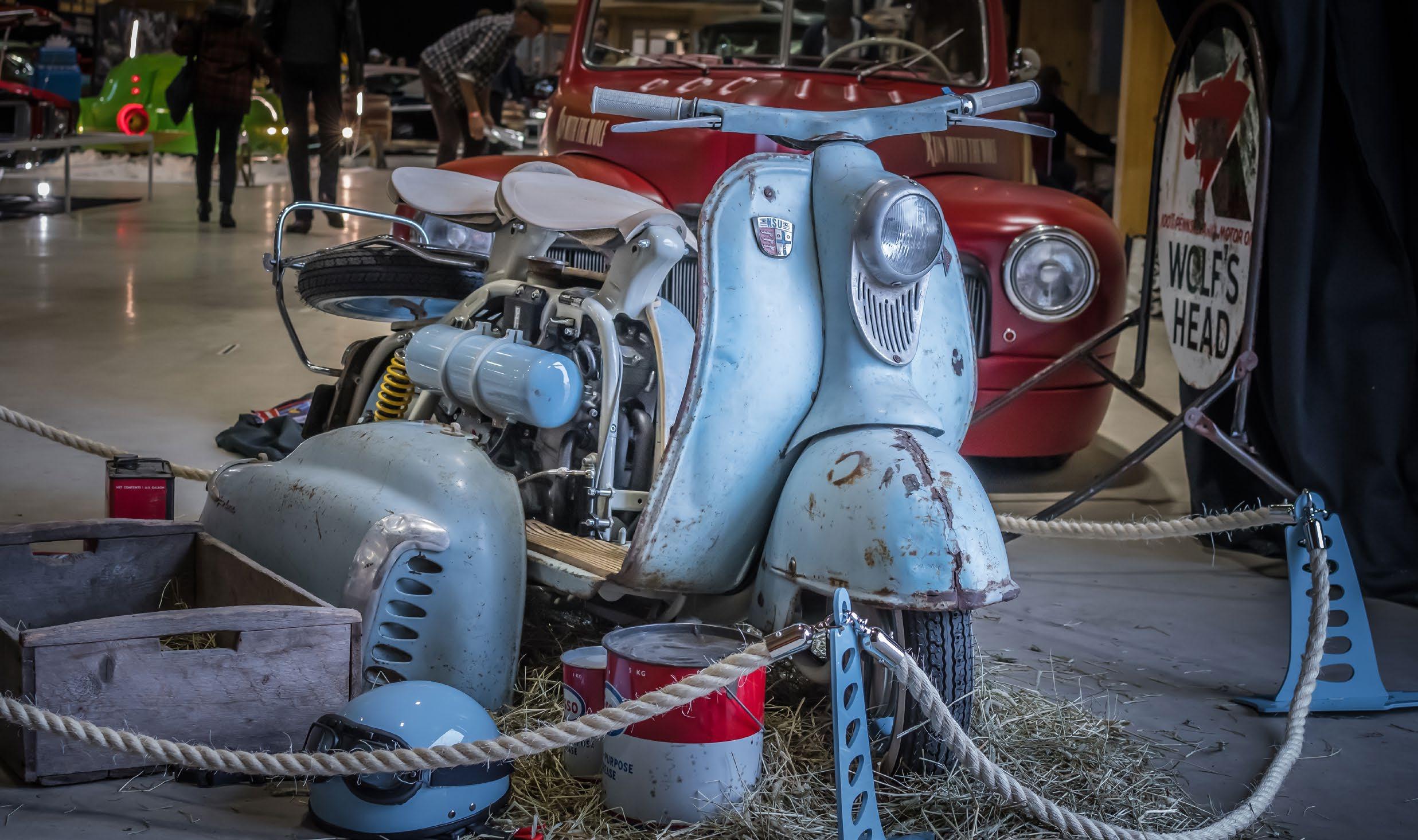 Matias Nygårdin NSU Prima 1959 on saanut täysin uudenlaisen tekniikan vanhaan kuoreen. Osastolla pyörään sopivat somisteet kruunasivat esillepanon.
